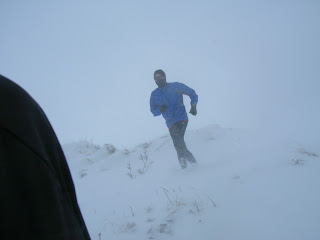 Now throw some wind, snow and hills into the mix, you have a challenge. When I started experiencing ice cream headaches I knew that I was running into the wind, and when I would fall flat on my face I knew that deep snow was ahead. When you are out in that type of weather all depth perception ceases to exist, so you have to be willing to fall. I am not a huge fan of it, but it is growing on me. Eric on the other hand, well he lives for this extreme weather/running.